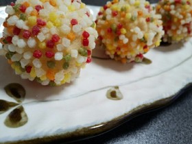 これまでずっと、お弁当の彩りには人参やパプリカを使ってきましたが、五色あられを使えば簡単に華やかさがプラスできます。